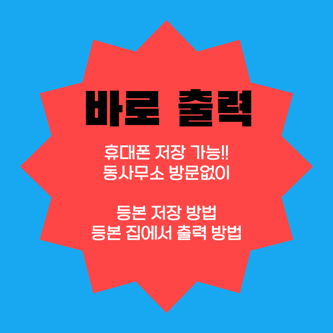 클릭 한번으로 가능한 방법이니, 동사무소 방문없이 빠르게 등본을 출력 및 저장을 해보세요.