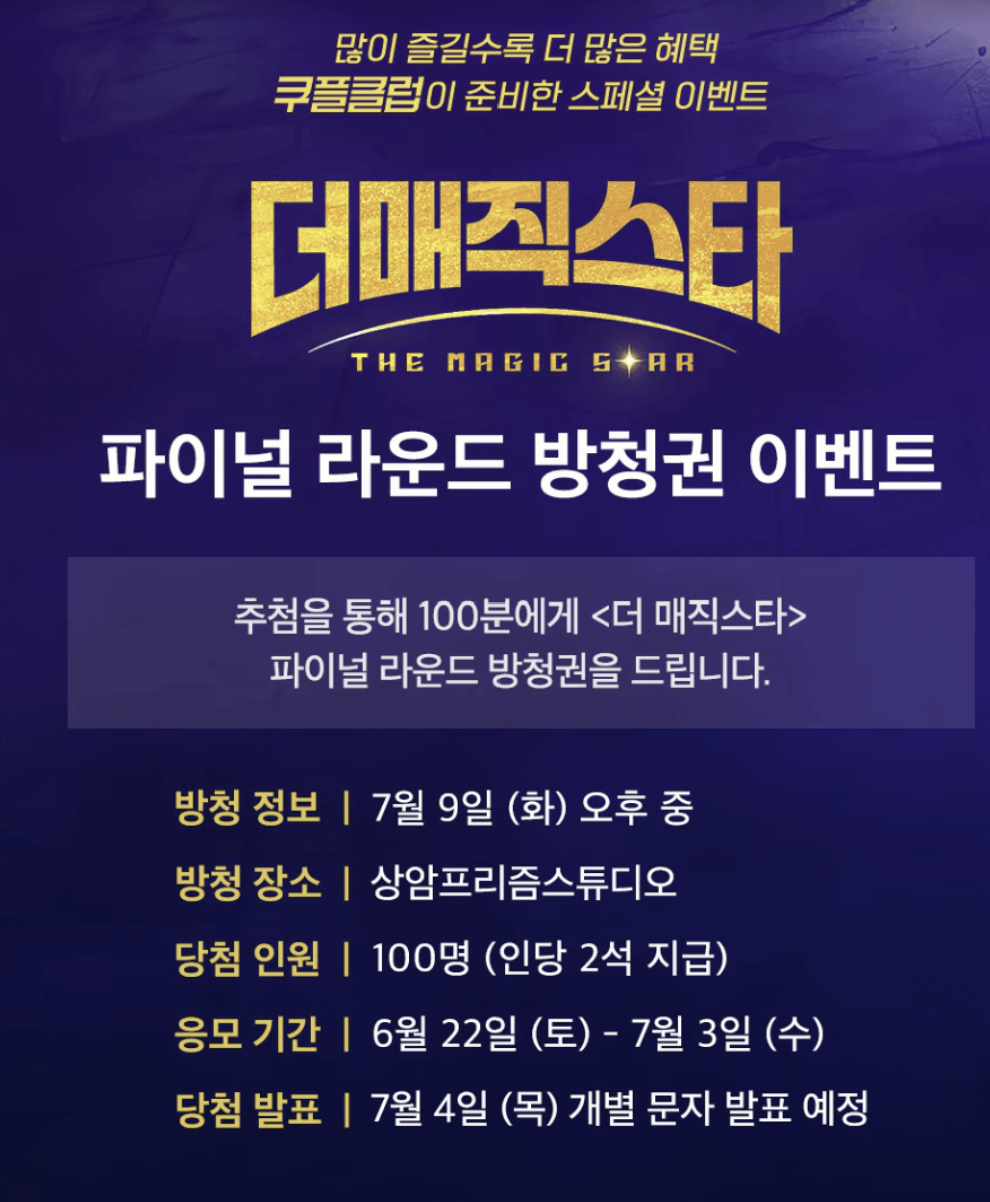 더 매직스타 방청신청은 공식 홈페이지와 쿠팡플레이에서 가능합니다. 아래 링크를 통해 쉽게 신청할 수 있어요.